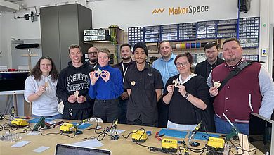 Das vielfältige Programm gab der Gruppe um Pavel Černý (Ph.D.) Einblicke in Lehrveranstaltungen an den Amberger Fakultäten und bot darüber hinaus in verschiedenen Workshops Möglichkeiten zum Ausprobieren und zum Sammeln eigener Erfahrungen. Im Labor für Turbomaschinen demonstrierte Prof. Dr. Andreas Weiß anschaulich (strömungs-)mechanische Effekte. Prof. Frank Späte ließ die Studierenden in Themen der Solarenergie eintauchen und das Running Snail Team nahm die Studierenden mit in die Welt der Formula Student. Im Digitalen Campus führte Christoph Müller die Gruppe durch den Maker Space. Nach einem Überblick über studentische Projekte durften die Gäste selbst Hand anlegen und löteten LEDs an selbst gezeichnete und vom Laser Cutter geschnittene Figuren. Prof. Dr. Pirkl bot im AR/VR-Labor hautnahe Erfahrungen in einem von Studierenden entwickelten virtuellen Escape-Room. Parallel zum Programm für die Studierenden konnten sich die Professorinnen und Professoren über Kooperationsmöglichkeiten austauschen.