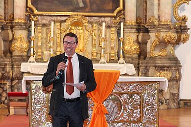 Den Blick in die Zukunft warf dann Prof. Dr. med. Clemens Bulitta, der Präsident der OTH Amberg-Weiden. Einem Bildungskapitalismus, wie er an privaten Hochschulen gepflegt wird, erteilte er eine klare Absage. Auftrag aller Akteure in der Bildung, angefangen von der frühkindlichen Erziehung, über Schule und berufliche Bildung bis hin zur akademischen Bildungseinrichtung, sei es „Mut und die Bereitschaft zu wecken, für sich und das eigene Leben Verantwortung zu übernehmen“. Ziel sei eben nicht nur der berufliche Erfolg, sondern vielmehr ein ganzheitlich erfolgreiches Leben. Der Wert der Bildung liege weniger darin, materielle Werte zu bilden, sondern mehr in der Wertebildung.