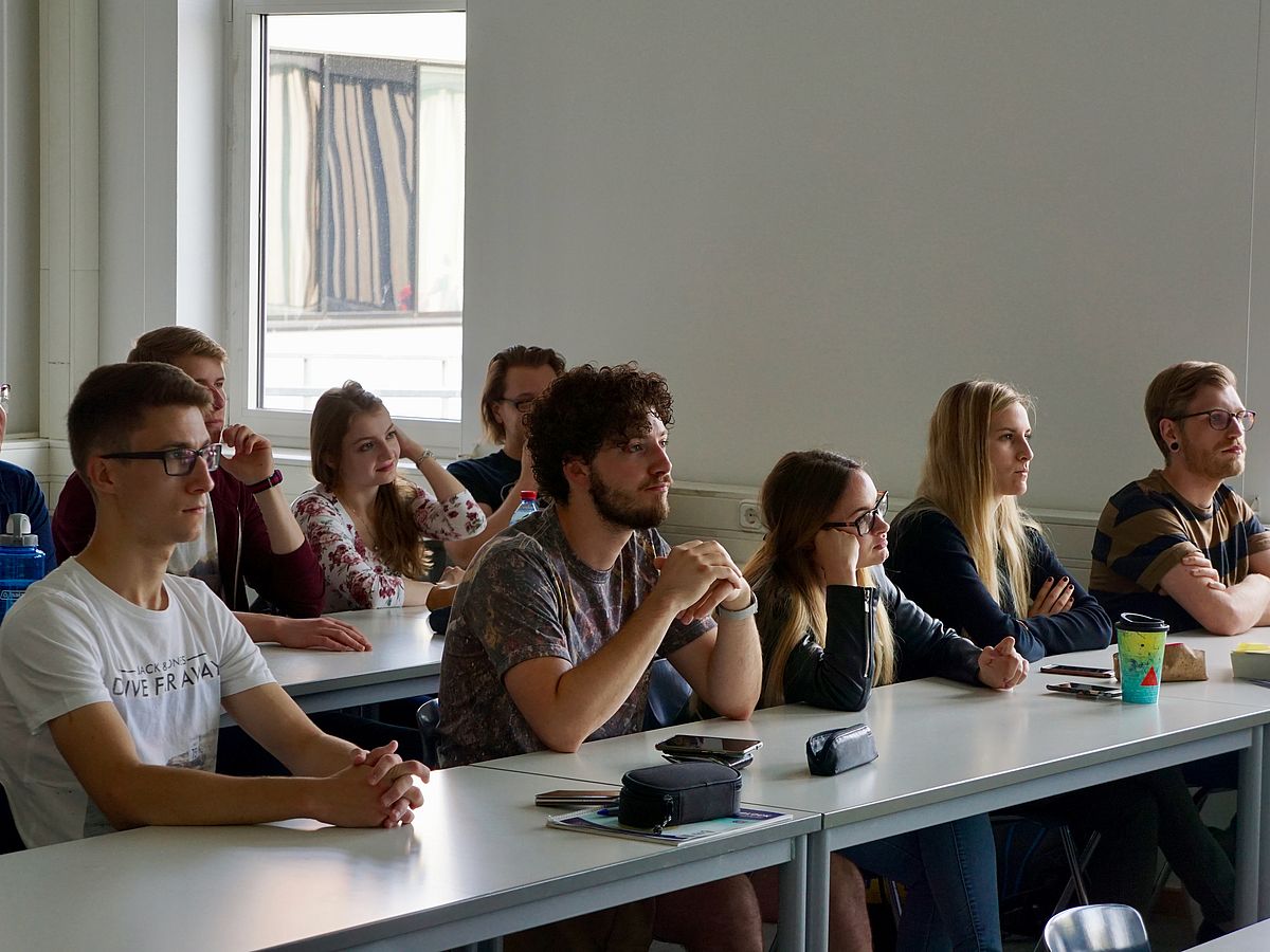Am Beispiel der Order Picking Machinery (OPM), dem bis heute weltweit erfolgreichsten vollautomatischen Kommissioniersystem, das bei zahlreichen führenden Lebensmitteleinzelhändlern wie EDEKA (Deutschland), Kroger (USA), Mercadona (Spanien), Coop (Norwegen), E. Leclerc (Frankreich), Migros (Schweiz) und vielen weiteren im Einsatz ist, gewährte Nathan Royer den Studierenden Einblicke in die Welt der innovativen Lagersysteme.