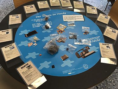Neben der Ausstellung waren ökologische und ökonomische Fußstapfen für Handy, Kaffee, Schokolade oder Fußball zu sehen. So konnte man sich mit der Produktionsweise von Fußbällen vertraut machen und selbst versuchen einen zu nähen. Auch die Rohstoffe, die für ein Handy notwendig sind, konnten begutachtet werden. Gleiches galt für Kaffee und Schokolade.