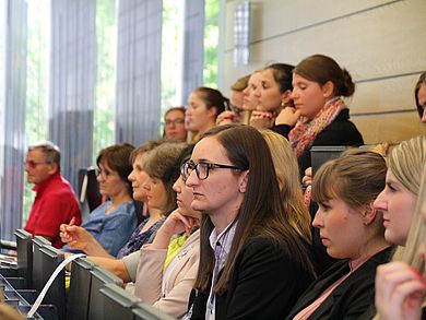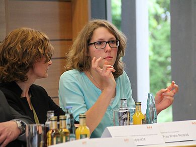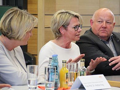 Ein weiterer Grund, warum Frauen in Führungspositionen unterrepräsentiert sind, ist die Vereinbarkeit von Familie und Beruf. Für die Zuhörerinnen wenig überraschend waren die Zahlen zu „Erledigung von Aufgaben im Haushalt - Frauen und Männer in Führungspositionen“. Bei einer Befragung von Männern in mittleren Führungspositionen ist das Ergebnis, dass ihre Frau die meisten Arbeiten im Haushalt erledige. Frauen, die ebenfalls in einer mittleren Führungsposition tätig waren, erledigten diese Arbeiten noch zusätzlich zum Job. Und sobald ein Kind ins Spiel kommt, setze eine Retraditionalisierung der Geschlechterrollen ein. So die Studie.