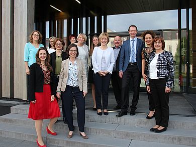 Ein weiterer Grund, warum Frauen in Führungspositionen unterrepräsentiert sind, ist die Vereinbarkeit von Familie und Beruf. Für die Zuhörerinnen wenig überraschend waren die Zahlen zu „Erledigung von Aufgaben im Haushalt - Frauen und Männer in Führungspositionen“. Bei einer Befragung von Männern in mittleren Führungspositionen ist das Ergebnis, dass ihre Frau die meisten Arbeiten im Haushalt erledige. Frauen, die ebenfalls in einer mittleren Führungsposition tätig waren, erledigten diese Arbeiten noch zusätzlich zum Job. Und sobald ein Kind ins Spiel kommt, setze eine Retraditionalisierung der Geschlechterrollen ein. So die Studie.