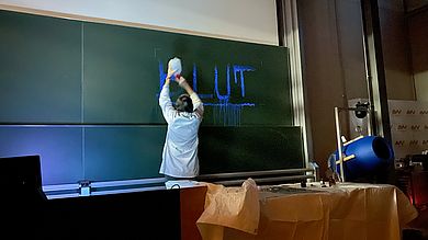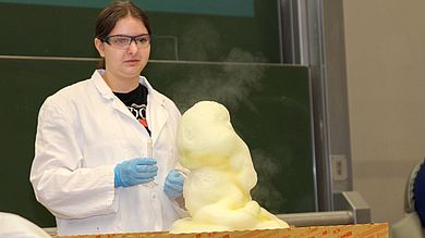 Den krönenden Abschluss der Weihnachtsvorlesung bildet schließlich Prof. Dr. Peter Kurzweil und sein Team. Sie versprechen ein chemisches Spektakel. Dabei kommt unter anderem reichlich Stickstoff zum Einsatz. Das Team lädt außerdem zu einer kleinen Schaumparty ein, lässt eine elektrochemische Zunge erkennen, ob sie in Wasser, Bier oder Kaffee getaucht ist, und bringt Sägespäne ohne Feuer zum Brennen. Magie der Weihnachtszeit…