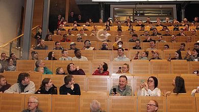 Wenn das Siemens Innovatorium bis auf den letzten Platz besetzt ist und es raucht, knallt und scheppert, dann hat die Fakultät Maschinebau/Umwelttechnik zur traditionellen Weihnachtsvorlesung geladen. Prof. Dr. Matthias Mändl hat zusammen mit seinen Kollegen ein unterhaltsames Programm zusammengestellt. Doch schon zu Beginn stellt sich die Frage: Wer wird mit seinem Abschlussexperiment den Hörsaal „unbewohnbar“ machen?