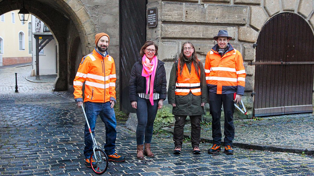 Mitte Dezember wollten es 19 Kinder der Kindertagesstätte Christkönig aus Amberg genau wissen. Wie lang war einst die komplette Stadtmauer um Ambergs Innenstadt. Mithilfe der Ausgeliehenen Vermessungsutensilien aus dem Studiengang Geoinformatik und Landmanagement rückten die Kleinsten der Stadtmauer zu Leibe.
