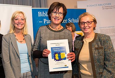Kultusstaatssekretärin Carolina Trautner überreichte in der Bayerischen Staatsbibliothek in München das Gütesiegel „Bibliotheken – Partner der Schulen 2018 - 2020“ an Christina Michel, Leiterin der Bibliothek der OTH Amberg-Weiden. „Uns sind Veranstaltungen für Schülerinnen und Schüler ein besonderes Anliegen. Allein im vergangenen Jahr begrüßten wir über 600 in 34 Veranstaltungen. Neben einem Rundgang und einer Einführung in die Bibliotheksbenutzung richtet die Bibliothek die Schulungen fachlich und vom Umfang her auf die Bedürfnisse aus, die zuvor mit der Lehrkraft abgesprochen werden. Darüber hinaus werden die Lehrinhalte auf Wunsch um Informationsbewertung und Literaturverwaltung erweitert“, sagt Christina Michel.