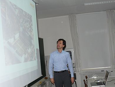 Die Lindenschule hat hierzu mit Förderung durch die E.ON AG ein Labor eingerichtet, verbunden mit Besuchen ausgewählter externer Einrichtungen. Prof. Dr. Tim Jüntgen (Fakultät Maschinenbau/Umwelttechnik) stellte nach Begrüßung der Gäste durch Dr. Christiane Schmidt im Siemens Innovatorium die Kunststoffverarbeitung am Beispiel der Herstellung einer Zahnbürste vor, ein anschließender Vortrag von Prof. Dr. Stefan Beer (Fakultät Maschinenbau/Umwelttechnik) beleuchtete den Themenkreis der Windenergie. In der Fakultät Elektro- und Informationstechnik präsentierte darauf folgend Prof. Dipl.-Ing. Maximilian Kock den Schülerinnen, Schülern und Lehrkräften die Schallübertragung.