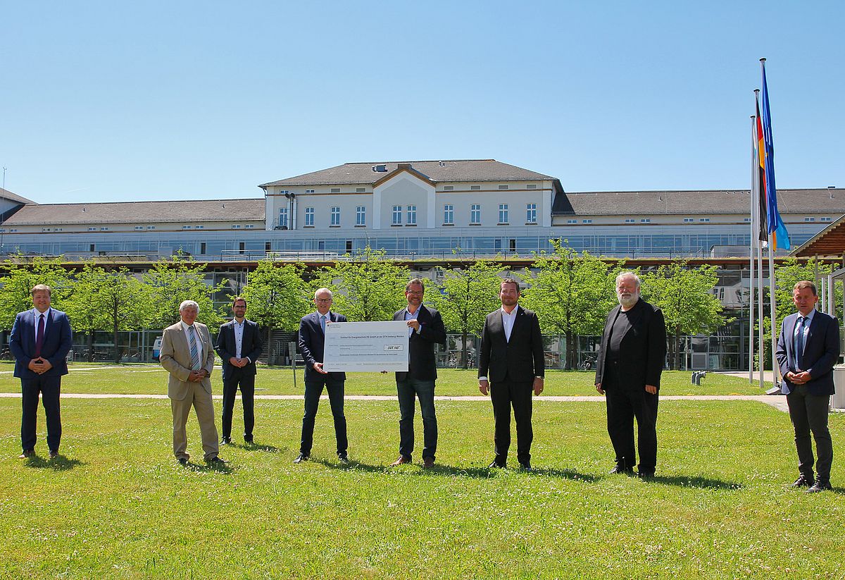 Bei strahlendem Sonnenschein überreichte Florian Pronold, Mitglied des Bundestags und parlamentarischer Staatssekretär im Bundesumweltministerium, am Donnerstag die beiden Förderschecks an das Institut für Energietechnik (IfE) an der OTH Amberg-Weiden. Pronold, der selbst im bayerischen Deggendorf aufgewachsen ist, würdigt damit u. a. das Engagement des Instituts für Energietechnik (IfE): „Ohne wissenschaftliche Grundlagenforschung wüssten wir nur wenig über die Folgen des Klimawandels. Und ohne die Forschung an technischen Innovationen hätten wir keine ausreichende Antwort auf den Klimawandel. Die Hochschule ist ein Motor für Innovationen – insbesondere das Institut für Energietechnik IfE GmbH an der Ostbayerischen Technischen Hochschule Amberg-Weiden und die Arbeitsgemeinschaft Obere Vils-Ehenbach (AOVE GmbH). Sie haben die Fördermöglichkeiten der Nationalen Klimaschutzinitiative genutzt, um in ein kommunales Klimaschutznetzwerk zu investieren. Kommunen und Wissenschaft gehen auch bei der Ressourceneffizienz gemeinsam vor. Das beweist der Landkreis Deggendorf, der zusammen mit dem IfE eine nachhaltige Ressourcenbewirtschaftung vorantreibt.“