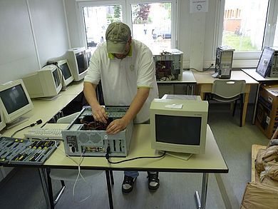 Computer-Komponenten im Wert von rund 500 Euro spendete die Hochschule Amberg-Weiden über ihr Rechenzentrum der sozialen Einrichtung „Die Werkstatt“ mit Sitz in Weiden. Bei der Spende, die vom Leiter des HAW-Rechenzentrums, Dipl.-Ing. (FH) Albert Dotzler, an den Projektleiter der Werkstatt, Gerhard Faul, überreicht wurde, handelt es sich um gebrauchte bzw. ausgemusterte EDV-Ausstattungen wie Tastaturen, Kabel, Festplattengehäuse und Festplatten, Netzteile oder Grafikkarten, die nun in der Weidener Einrichtung „Die Werkstatt“ zu funktionsfähigen Einheiten zusammengesetzt werden. Die gespendeten Computerteile werden dabei registriert, überprüft und getestet. Die Computer werden daraufhin an Bedürftige wie Arbeitslose, Asylbewerber oder Alleinerziehende befristet und kostenlos verliehen. Die Bedürftigkeit muss nachgewiesen werden.