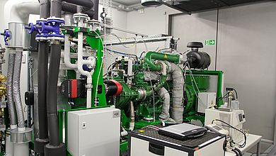 Das umgerüstete BHKW ist Teil des Forschungsprojekts „Technologielösungen für hocheffiziente Zero-Emission H2-Motoren für KWK-Anwendungen“ (CH2P), bei dem zusammen mit acht weiteren Partnern Kraft-Wärme-Kopplungsanlagen der nächsten Generation entwickelt werden, um aus Wasserstoff effizient und kostengünstig Strom und Wärme bereitzustellen.