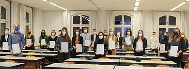 Die Preisvergabe fand nun im kleinen Kreis als hybride Veranstaltung statt. Das heißt die Stipendiatinnen und Stipendiaten waren an der Hochschule, die Förderer waren hingegen virtuell zugeschaltet. „Ich freue mich, dass wir trotz der Umstände heute gemeinsam die exzellenten Studienleistungen der Studierenden und das exzellente Engagement der Förderpartnerinnen und Förderpartner feiern können“, sagte Vizepräsident Prof. Dipl.-Ing. Ulrich Müller in seiner Begrüßung.