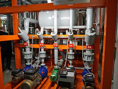 Die Entwickler trimmten die Anlage auf ökonomische und ökologische Effizienz: „Es bleibt keine Kilowattstunde Wärme ungenutzt“, sagt Prof. Dr.-Ing. Markus Brautsch, Gründer des Instituts für Energietechnik IfE. „Was überflüssig ist, wird zu Prozesskälte. Nur noch zwei Millionen Kilowattstunden Strom werden aus dem Netz benötigt – vorher waren es zehn Millionen. Zwar kostet die Anlage etwa 2,5 Millionen Euro, dafür spart sie 553.000 Euro im Jahr an Energiekosten.“