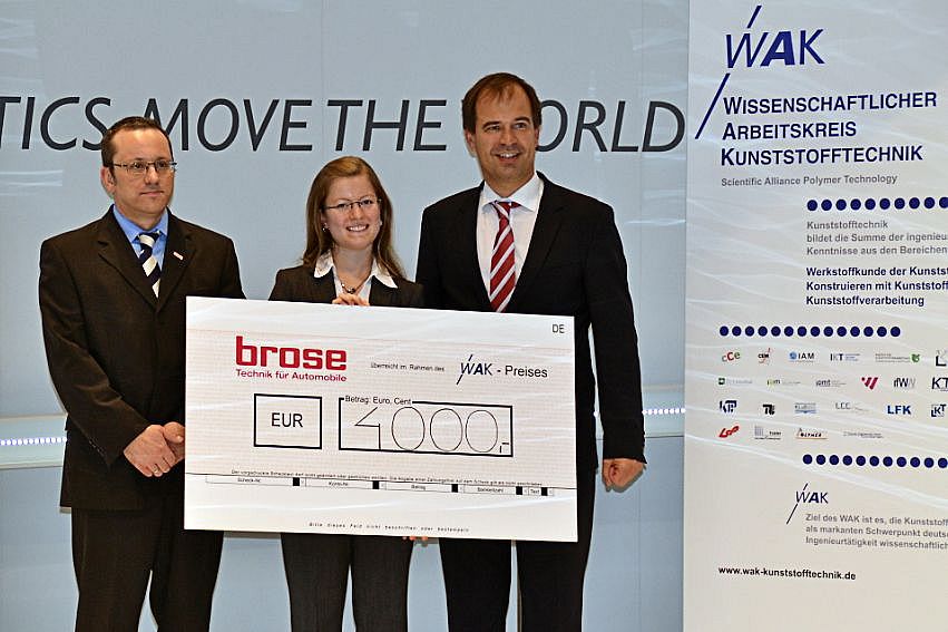 Das Unternehmen Brose mit Sitz in Coburg vergibt jährlich den mit 4.000,00 Euro dotierten Preis für neue Verfahren und Techniken bei der Verarbeitung von Kunststoffen.