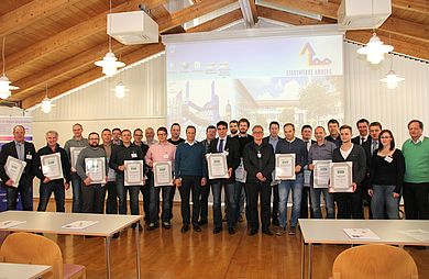 Stadtwerke, Kliniken, industrielle Betriebe – die an den Lernenden Energieeffizienz-Netzwerken (LEEN) beteiligten Firmen sind sehr heterogen aufgebaut. Doch alle haben das gleiche Ziel: Energiekosten durch die Steigerung von Energieeffizienz senken. Die beiden Lernenden Energieeffizienz-Netzwerke (LEEN) Ostbayern I und Ostbayern II, deren Netzwerkträger das Institut für Energietechnik (IfE) GmbH an der Ostbayerischen Technischen Hochschule Amberg-Weiden ist, sind als eines der ersten Energieeffizienz-Netzwerke in Deutschland mit dem Gütesiegel der Arbeitsgemeinschaft Energieeffizienz-Netzwerke (AGEEN e. V.) ausgezeichnet worden. Beim Netzwerktreffen, das kürzlich bei der Stadtwerke Amberg Versorgungs GmbH stattgefunden hat, wurden die Urkunden an die Mitglieder der beiden LEEN übergeben.