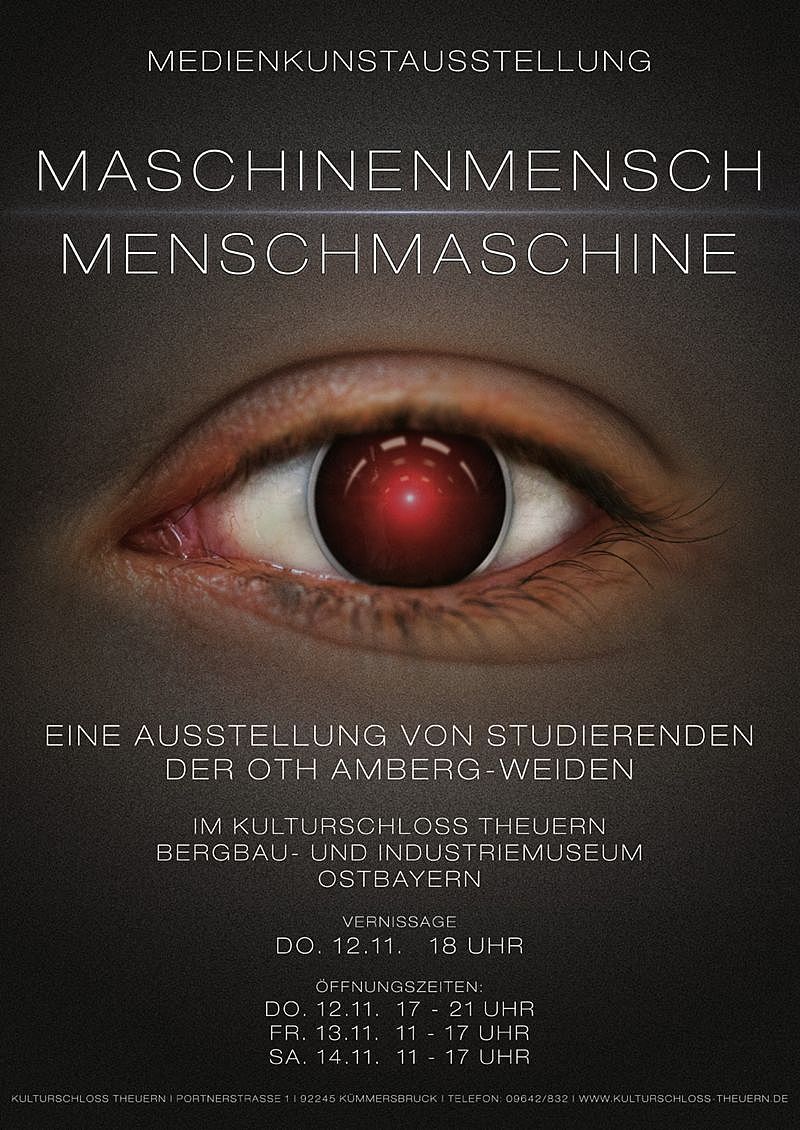 Technik und Programme werden immer perfekter konfiguriert. Sie imitieren Menschlichkeit und Vernunft. Damit wird eine tiefliegende Angst bei uns angesprochen: Was ist, wenn wir selbst nur sprechende Maschinen sind? „Maschinenmensch/Menschmaschine“ war das Thema, das Studierende im Fach Medienkunst des Masterstudiengangs Medientechnik und -produktion der Ostbayerischen Technischen Hochschule Amberg-Weiden (Fakultät Elektrotechnik, Medien und Informatik) gestellt wurde. Die Ergebnisse der Studienarbeiten sind nun von Donnerstag, 12. November, bis Samstag, 14. November 2015, im Kulturschoss Theuern zu sehen.