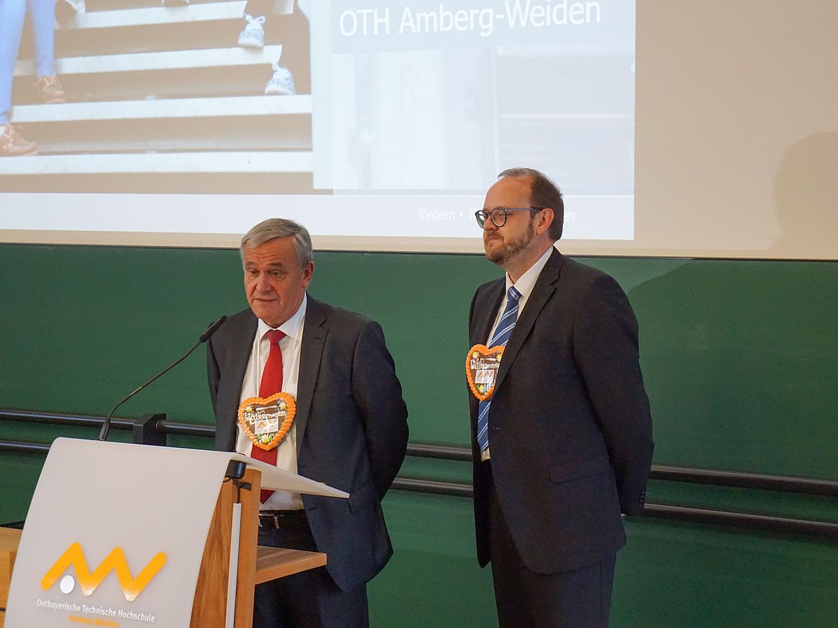 Da der Studienstart ein besonderes Ereignis für die Erstsemester ist, beginnt der erste Tag als StudentIn mit der traditionellen Erstsemesterbegrüßung. Oberbürgermeister Michael Cerny, Präsidentin Prof. Dr. Andrea Klug und die Vorsitzende des studentischen Konvents, Sophie Spies, hießen die neuen Studierenden in Amberg willkommen. „Der Start in ein Studium ist ein Start in einen neuen Lebensabschnitt. Sie werden auf Herausforderungen treffen, die Sie aber nicht alleine meistern müssen. Wir, die gesamte Hochschulfamilie, werden Sie dabei unterstützen“, versprach Hochschulpräsidentin Prof. Dr. Andrea Klug.