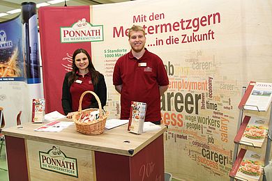 Letztes Jahr suchte Lisa beim careerday noch ein Unternehmen, bei dem sie ihre Bachelorarbeit im Studiengang Handels- und Dienstleistungsmanagement schreiben kann, in diesem Jahr steht sie hinter der Messetheke von „Ponnath – DIE MEISTERMETZGER“ und informiert Studierende über die verschiedenen Einstiegsmöglichkeiten bei dem Kemnather Unternehmen.