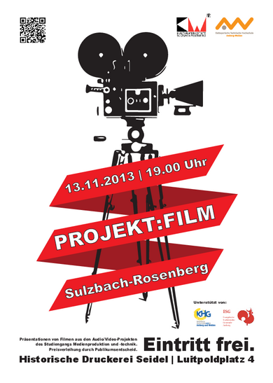 Am 13. November 2013 findet um 19.00 Uhr zum ersten Mal eine Filmvorführung mit dem Titel „Projekt:Film“ in der Historischen Druckerei Seidel in Sulzbach-Rosenberg statt.