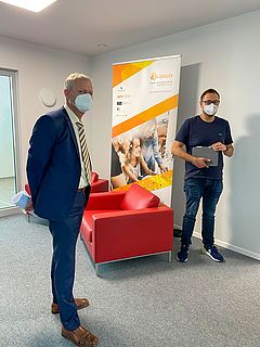 Bei der Spendenübergabe mit anschließendem Rundgang erhielten die Gäste der NORMA-Niederlassung Regenstauf zugleich einen guten Eindruck davon, wofür die letztjährigen Spenden verwendet wurden. Zum Beispiel für die Mitfinanzierung der Einrichtung eines Business Labs im E-House am Weidener Campus. Dieses bietet Gründern im digitalen Bereich Co-Working-Arbeitsplätze und durch die enge Verzahnung mir der Hochschule weitere Vorteile, wie regelmäßige Netzwerkveranstaltungen, aktuellen Wissenstransfer oder die Möglichkeit Labore und Einrichtungen zu nutzen. Bei der Gelegenheit stellten Prof. Dr. Christiane Hellbach und André Pscherer, Leiter der digitalen Gründerzentren (DGZ), die einzelnen Gründungsinitativen der Hochschule kurz vor.