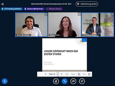 Der Netzwerkgedanke ist eines der zentralen Motive des Deutschlandstipendiums an der OTH Amberg-Weiden. Neben der finanziellen Unterstützung sollen Stipendiatinnen und Stipendiaten im Laufe des Förderjahres untereinander und mit ihren Förderpartnern aus Wirtschaft und Gesellschaft in Kontakt kommen. Dazu richtet die Hochschule traditionell im Sommersemester ein Netzwerktreffen im Rahmen des Deutschlandstipendiums aus. In diesem Jahr wurde das Treffen mit einer Feier zum 10-jährigen Jubiläum dieses Stipendienprogramms an der OTH Amberg-Weiden verbunden. 46 Gäste aus dem Kreis der aktuellen Förderpartner sowie der Stipendiatinnen und Stipendiaten folgten der Einladung zur digitalen Feierlichkeit.