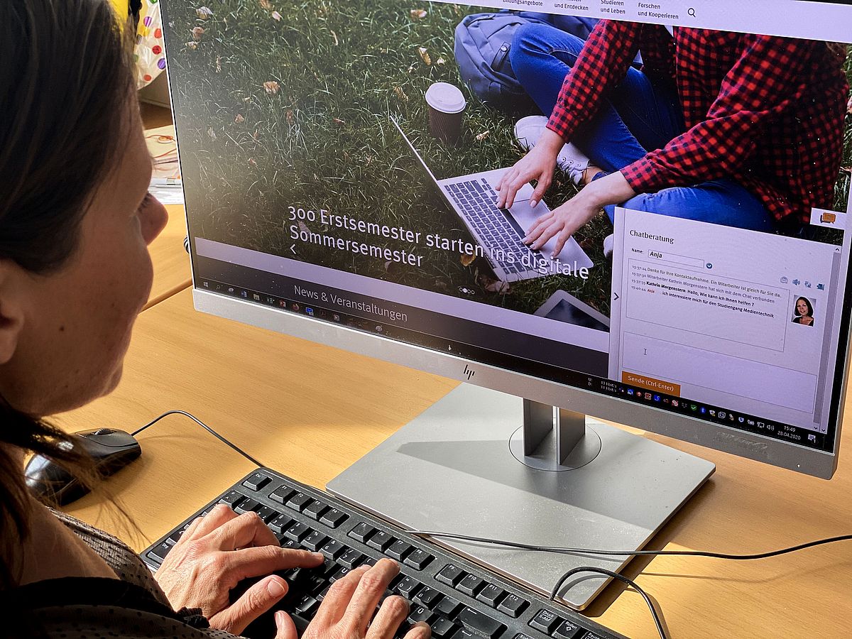 Bequem von zuhause aus oder jedem anderen Ort mit Internetzugang können Studieninteressierte über das Chat-System Fragen zur Studienfachwahl oder rund ums Studium klären. Das Team des Studien- und Career Service bietet den Chat von Montag bis Freitag von 8 bis 18 Uhr an. Zusätzlich können Studieninteressierte täglich, das Wochenende ausgenommen, jeweils von 16 bis 18 Uhr mit Studierenden chatten und so Infos aus erster Hand erhalten.
