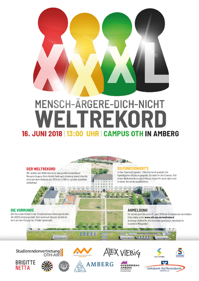 Nachdem die Stadt Amberg im Sommer 2017 den Weltrekord mit den meisten Personen beim gleichzeitigen „Mensch ärgere Dich nicht“-Spielen" geschafft hat, versucht die Studierendenvertretung der OTH Amberg-Weiden den nächsten Weltrekord in die Vilsstadt zu holen, diesmal mit dem größten von Menschen bespielbaren „Mensch ärgere Dich nicht“-Spielfeld auf einer Fläche von 3.700 m2.