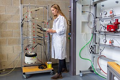 Die Umwelt- und Verfahrenstechnik ist in allen Lebensbereichen präsent, auch wenn sie nicht unmittelbar sichtbar ist. Filteranlagen, die Luft, Wasser und Boden vor Schadstoffen schützen oder Prozesse, in denen Lebensmittel, Medikamente und viele Produkte des täglichen Lebens hergestellt werden. Erleben Sie im Labor, wie durch mechanische, thermische oder chemische Prozesse Rohstoffe gewonnen und zu Produkten verarbeitet oder Schadstoffe abgetrennt werden.