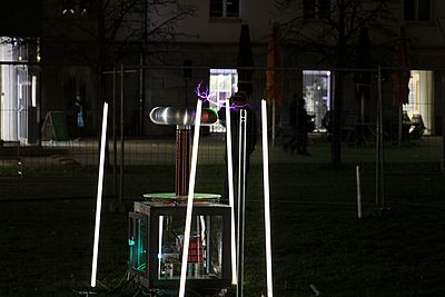 Wir freuen uns, ein ambitioniertes Projekt unserer Studierenden präsentieren zu dürfen. Die meterhohe Teslaspule ist ein Unikat, das gigantische Lichtblitze verschießt – ein visuelles Spektakel für sich. Doch das ist noch nicht alles: Jeder Blitz gibt bei seiner Generierung einen charakteristischen Ton von sich, der durch geschickte Programmierung und digitaler Audiomodulation zu einem audiophilen und energiegeladenen Hörgenuss wird. Hier treffen Technologie und Kunst in einer einzigartigen Symbiose zusammen. Erleben Sie, wie Musik „aussieht“!