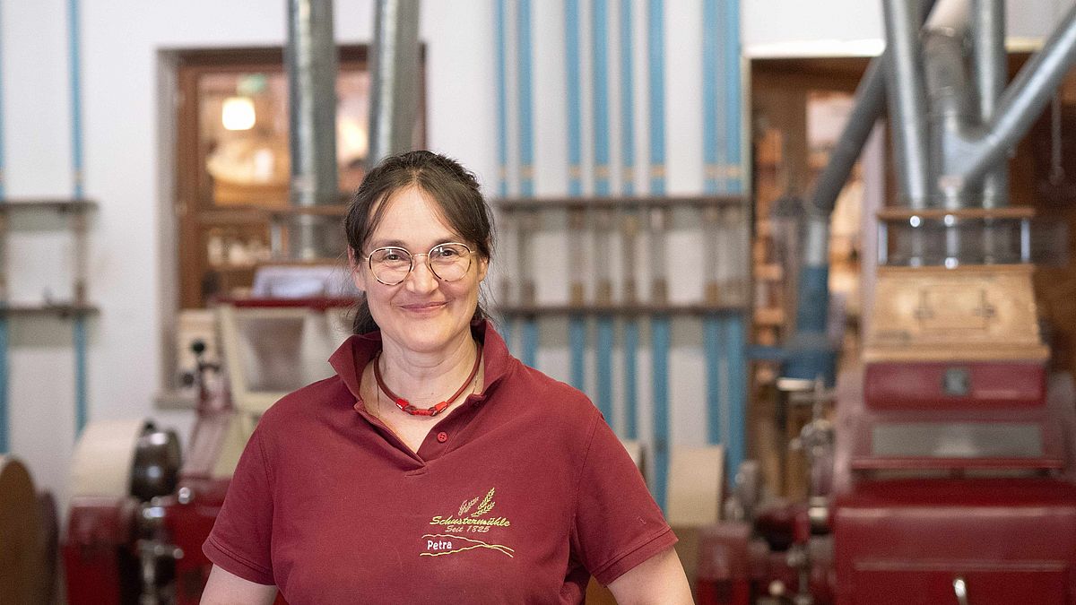 Petra Schuster, Müllermeisterin führt mit Bodenständigkeit, Innovationsgeist und unternehmerischem Geschick den seit 1825 bestehenden traditionsreichen Familienbetrieb. Die Mühle verarbeitet ausschließlich Getreide aus eigenem Anbau oder von regionalen Landwirten. Mit großer Sorgfalt und Qualität entstehen dort hochwertige Mehle, die sowohl an Bäckereien als auch im hauseigenen Mühlenladen angeboten werden.