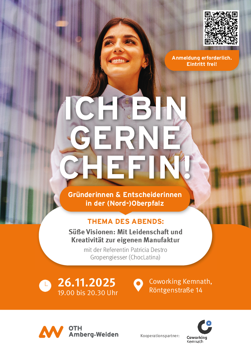 Am 26. November 2025 lädt der Campus Kemnath der OTH Amberg-Weiden gemeinsam mit dem Coworking Kemnath unter dem Motto „Süße Visionen: Mit Leidenschaft und Kreativität zur eigenen Manufaktur“ zu einer inspirierenden Abendveranstaltung ein. Beginn ist um 19 Uhr in den Räumen des Coworking Kemnath (Röntgenstraße 14).