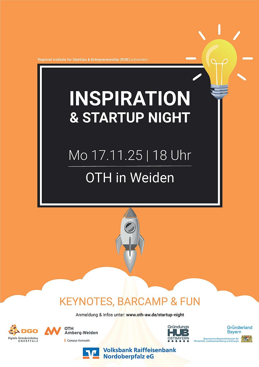 Mitte November gibt es das Highlight im Bereich Gründung, Innovation und Entrepreneurship an der OTH Amberg-Weiden, dieses Jahr mit geballten Erfahrungen und Erkenntnissen aus dem Silicon Valley: die Inspiration & Startup Night.