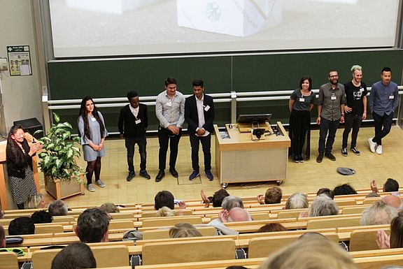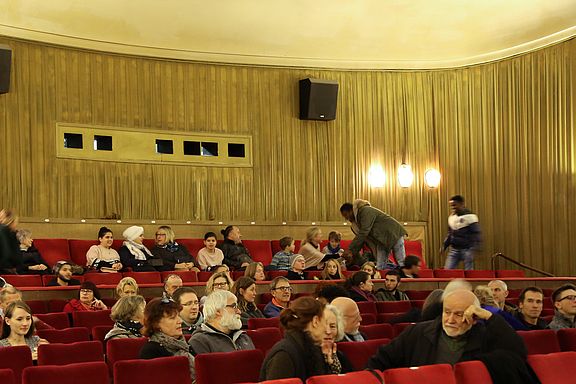 Zusammen mit Herrn Wörz veranstaltete Frau Prof. Dr. Nailja Luth am 22.11.2018 einen Themenabend. Im Foyer des Ring-Theaters konnten die Besucher sich die Fotoausstellung "Licht und Schatten" des kurdisch iranischen Journalisten Bakhtyar Karimi ansehen. Nach der Vorführung von lebens[t]raum gab es noch eine interessante Diskussionsrunde zusammen mit Protagonisten aus dem Film, ehemaligen Teilnehmern des Projektes "Integration.kreativ", Vertretern des CJD und Bürgermeisterin Brigitte Netta. Dabei hatte das Publikum die Möglichkeit Fragen zu stellen und Antworten direkt von Involvierten und Betroffenen zu erhalten.