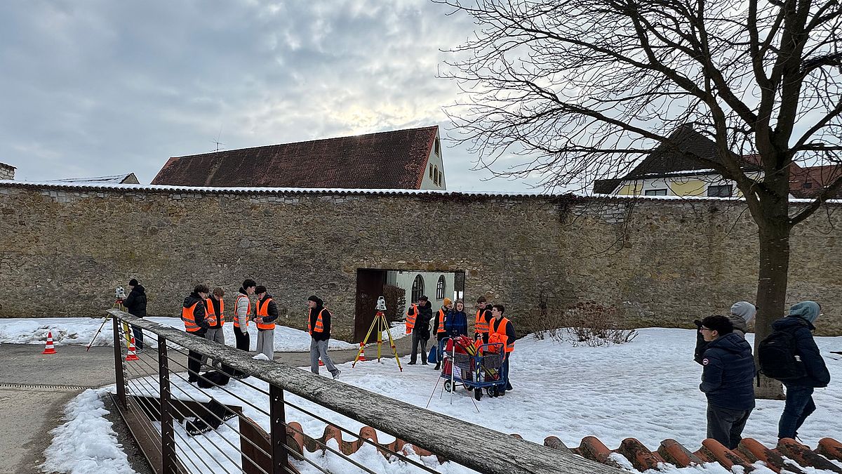 Am darauffolgenden Dienstag wurde der Perspektivwechsel vollzogen: Eine weitere Gruppe interessierter Schülerinnen und Schüler des Gymnasiums verbrachte einen Praxistag an der OTH Amberg-Weiden am Standort Amberg – ganz im Zeichen der Geodäsie.