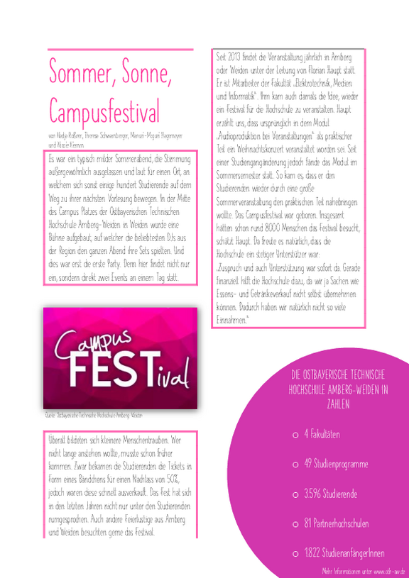 insight@WEIDEN BUSINESS SCHOOL berichtet über Themen, die Studierende der OTH Amberg-Weiden interessieren. Insbesondere deswegen, weil diese Themen direkt auf den Ideen der Studierenden beruhen und aus deren Feder stammen. Im Rahmen des Kurses Projektmanagement für PR und Marketing, welchen unsere Lehrbeauftragte Monika Hofmann an der WEIDEN BUSINESS SCHOOL lehrt, lernen KursteilnehmerInnen, von ihnen gewählte Themen zu recherchieren und in Artikeln aufzubereiten.