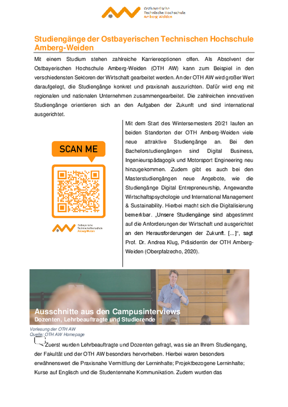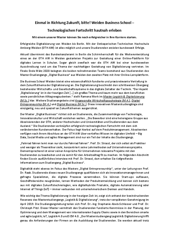 insight@WEIDEN BUSINESS SCHOOL - Projektarbeiten von Studierenden
