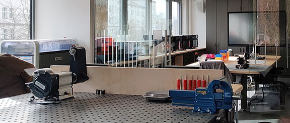 Neben moderner Software und Rechnerausstattung sowie einem Smartboard für Präsentationen, gibt es eine Vielzahl an Werkzeug, Geräten und Maschinen die sowohl das elektrotechnische als auch mechanische Arbeiten vereinfachen.