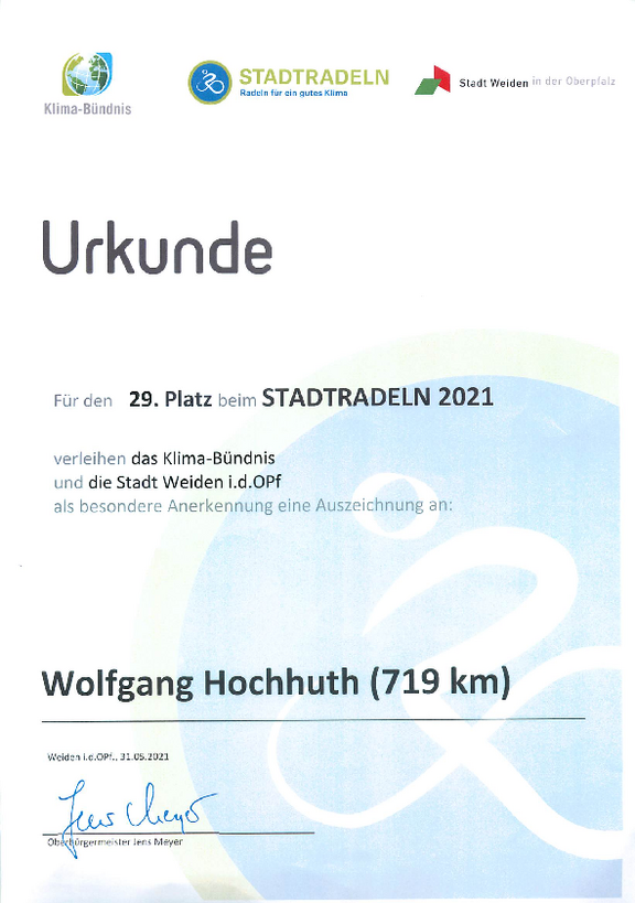 Einzelbester von Team Weiden und Gesamt-29. wurde unser Kollege Wolfgang Hochhuth mit 719 geradelten Kilometern