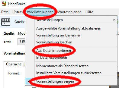 - Windows-Nutzer wählen im Menü „Voreinstellungen“ → „Aus Datei importieren“.