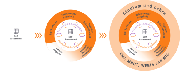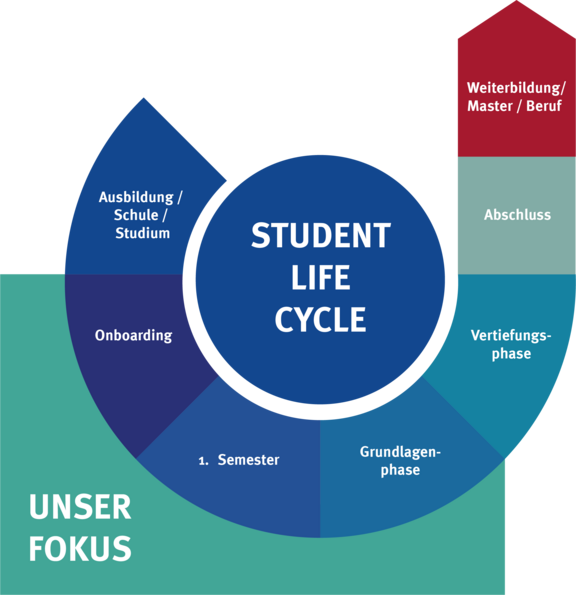 Gemeinsam mit den bestehenden Maßnahmen zentraler Einrichtungen entsteht ein Netz aus Angeboten zur Unterstützung und Förderung von Studierenden über den gesamten Student Life Cycle hinweg. Zielgerichtet können wir dadurch mit den Beratungseinrichtungen der Hochschule, Fakultäten und einzelnen Studiengängen nach einer Bedarfsanalyse individuelle Maßnahmen empfehlen.