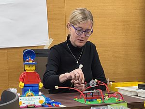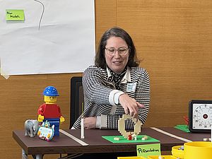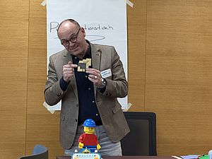 Mit großer Begeisterung haben die Teilnehmenden des Workshops den Einsatz von LEGO® SERIOUS PLAY® für die eigene Hochschullehre erarbeitet. Über Konstruktions- und Interaktionsprozesse wird dabei die Verbindung von Kopf, Herz und Hand greifbar. Prof. Dr. Markus Stäuble (Hochschule München) nahm die Teilnehmenden am 16.01. und 17.01.2025 mit in die faszinierenden Möglichkeiten der Kommunikation durch, mit und über Modelle, die neue Zugänge und gedankliche Freiräume eröffnet.