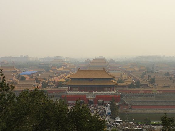 Nach ein paar Bier noch schnell die Suppe essen und dann noch zwei, drei Stunden schlafen, bevor der Zug dann zu einer hoechst unguenstigen Zeit um halb 3 Nachts in Peking ankommt. (Alle anderen, besseren Zuege waren schon ausgebucht...) Angekommen in Peking, war die Kunst mitten in der Nacht einen Taxifahrer zu finden der uns nicht uebers Ohr haut. Jeder wollte einen Pauschalpreis der ueber dem vom Taxometer berechneten Preis liegen wuerde. Aber wir hatten keine andere Wahl, als zu verhandeln und schliesslich einzuwilligen. Wie aus Shenyang bereits gewohnt, kennt der Taxifahrer wieder einmal die Adresse nicht, sagt dies aber erst nachdem wir eingestiegen und losgefahren sind. Kurzum, er machte uns in unserer Muedigkeit weis, dass wir an unserem Ziel angekommen sind und verlangte auf einmal den ausgemachten Preis pro Nase!! Aber so leicht kann er die lǎowài's nicht abzocken.. Das der Ausstiegspunkt nicht das gewuenschte Ziel war, bemerkten wir leider erst, als das Taxi sich schon wieder aus dem Staub gemacht hat und wir einen Wachmann fragten, wo wir denn eigentlich sind. Also naechstes Taxi nehmen.. Gluecklichweise kamen wir an fanden wir dann noch ein "normales" Taxi der uns in unsere Hotel gebracht hat. Gewohnt haben wir im Studentenviertel Haidian, um auch mal das Nachtleben von Beijing kennen zu lernen :) Am ersten Tag (Samstag) stand dann der Tian'anmen (Platz des Himmlichen Friedens), die dahinter liegende Forbidden City und der noch noerdlicher liegende Jingshan-Park, von dessen Huegel aus man die Verbotene Stadt noch einmal ueberblicken kann.