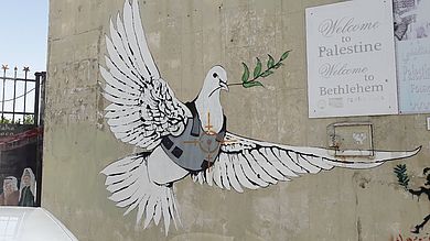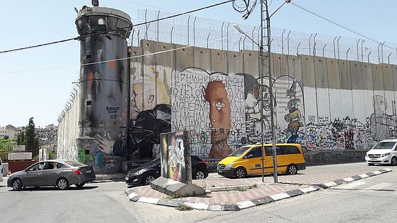 Als wir uns später ins friedlichere Betlehem aufmachten, das sich im Westjordanland befindet, wurde hinter uns aus Sicherheitsgründen die Grenze dicht gemacht. Da keine Busse mehr nach Jerusalem passieren konnten, machten wir uns zu Fuß auf die Rückreise. Am ersten Checkpoint wurden wir von den israelischen Grenzsoldaten abgewiesen. Nun standen wir etwas ratlos vor der 8 m hohen und fast 800 km langen Grenzmauer zwischen Israel und Westjordanland. Am zweiten Checkpoint wurden wir als einzige Ausländer zusammen mit unzähligen Palästinensern unter höchsten Sicherheitsvorkehrungen wie Sardinen durch den Grenzübergang gequetscht. Nach wenigen Kilometern Fußmarsch gen Jerusalem befand man sich wieder in einer idyllischen Vorstadt. Das Leid der Palästinenser erschien nun wieder sehr weit entfernt…