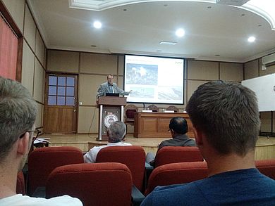 Also; wir kamen am 5.September in Mumbai an. Christophs Eltern kennen eine Frau, die viel mit der Sogenannten Pallotti Kirche zu tun hat und so kamen wir mit einem Päckchen für den Pfarrer die ersten zwei Nächte in einer Kirche in Mumbai unter. Wir verstanden uns gut mit den Pfarrern und als wir weiter nach Goa fahren wollten, überredeten sie uns, auch die Pallotti Kirche dort zu besuchen. Wir hatten uns im Vorhinein vorgenommen, die Details unserer Reise durch die Umstände bestimmen zu lassen, also sagten wir zu. Wir wurden wieder sehr freundlich empfangen und unterhalten, aber so langsam zog es uns Richtung Strand. Ein Theologiestudent lieh uns seinen Scooter, damit wir alle Strände abklappern konnten und uns eine schöne Hütte suchen konnten. Die Meinungen über den indischen Straßenverkehr sind eher gespalten, aber mir macht es jedes Mal richtig spaß selbst einzutauchen in den Fluss des Verkehrs, der durch ganz eigene Regeln geordnet ist und doch überraschend gut funktioniert. Wir fanden eine einfache Hütte, die direkt am Strand war und nicht mehr als 3 Minuten zu Fuß von einem Süßwassersee und einem Dschungel war. Die Touristensaison in Goa geht von Oktober bis März, sodass wir überall fast alleine waren und in Ruhe lesen und Yoga machen konnten. Wir trafen auch einen Guru, der seit sieben Jahren im Himalaya in Höhlen lebt. Von ihm erfuhren wir viel über die Yoga Philosophie und ein paar richtig mächtige Atemübungen. Nach ungefähr einer Woche begann dann der Workshop, also fuhren wir mit dem Zug weiter nach Kerala, wo wir die anderen trafen. Die Woche mit unseren neunen indischen Freunden ging sehr schnell vorbei, wir konnten ein etwas über den Indischen Photovoltaik Markt lernen und über Herausforderungen, die wir vorher nicht kannten. Am Ende der Woche waren wir schon zu einer recht vertrauten Gruppe zusammengewachsen und deshalb freu ich mich auch schon wieder auf den zweiten Teil unseres Austausches, wenn die Indischen Studenten nach Amberg kommen! Die letzten 10 Tage verbrachten wir in einem kleinen Ökoresort, dass unser Rickshaw Fahrer empfohlen hatte. Das Resort war noch nicht richtig geöffnet, da auch in Kerala noch keine Touristensaison war und so bekamen wir noch einige Bauarbeiten mit. Wir waren die ersten Gäste der Saison und wurden heftig verwöhnt, weil das wohl gutes Glück bringt. Zum Bleistift durften wir uns alle möglichen Früchte, von denen es einige gar nicht auf dem Markt zu kaufen gibt pflücken. Es war mein zweiter Aufenthalt in Indien, ich werde sicher noch mehr Zeit dort verbringen und kann es nur jedem empfehlen, der offen ist von einer so vielfältigen und fast komplett anderen Kultur zu lernen! Beste Grüße, Jakob