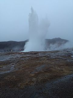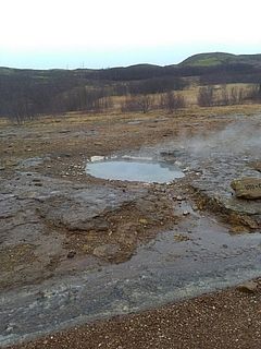 Geysire findet man auf der "Golden Circle" Route in der Naehe von Reykjavik. Heisses Wasser und Druck entlaedt sich hier alle acht Minuten an dem aktivsten Geysir "Strokkur." Es ist warm und dampft ueberall aus den Geysir Quellen. Ein fauler Geruch nach Schwefel steigt in die Nase, wenn man durch die Dampfschwaden der ueberall brodelnden und koechelnden Geysire laeuft.