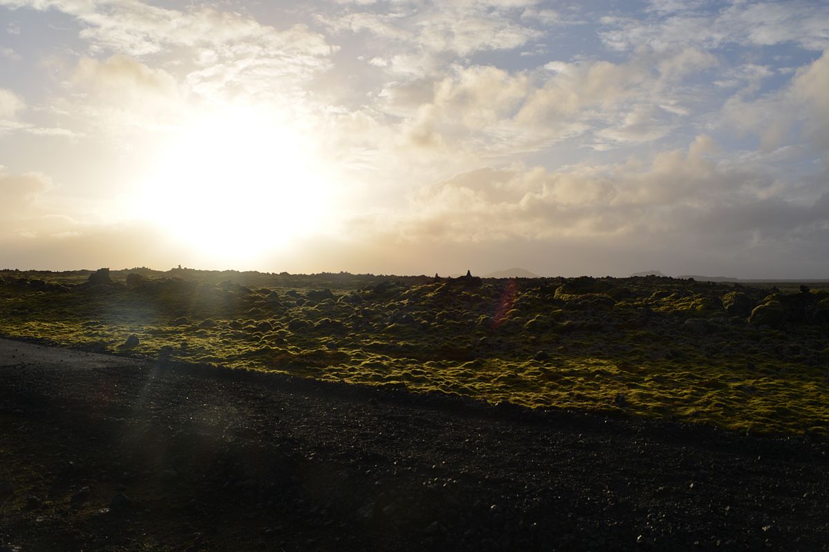Das ganze Gestein und Geroell, das auf den Strassenseiten liegt, ist das Ergebnis von Vulkanausbruechen. Ein paar Meter weiter waechst helles, saftgruener Moos auf dem schwarzen Lavagestein. In der Ferne sieht man mehrere Berge, es sieht aus als waere man im Film "Herr der Ringe," welcher tatsaechlich nicht weit der islaendischen Hauptstadt entfernt hier auch gedreht wurde.