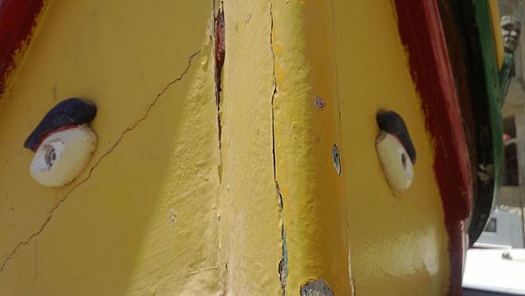 Der maltesische Glücksbringer auf dem Luzzus. Als Luzzus bezeichnet man die traditionellen Fischerboote auf Malta. Diese hölzerne Fischerboote sind sehr farbenfroh bemalt, meist in einem leuchtenden gelb, rot, grün und blau. Und an keinem maltesichen Boot darf es fehlen: Das Auge am Bug, das Glück bringen soll und die Fischer vor Gefahren schützt.