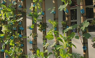 Die ersten drei Wochen am Institut konnte ich an mehreren Projekten mithelfen. Bald darauf bekam ich meine eigene Aufgabe. Ich sollte feststellen, inwiefern eine vertikale Farm die Gebäudewand dahinter abkühlt. Diese „vertikale Farm“ besteht aus Bambusrohren, die an einer Wand angebracht und mit Gemüse bepflanzt werden.