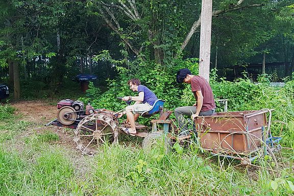 Für ihr Projekt nahmen sie mich mit auf einen Ausflug in die Nachbarprovinz Phichit. Zuerst dachte ich, es wäre nur ein Tag. Letztendlich verbrachten wir drei Tage in einer abgelegenen Hütte mit Angeln, Traktor fahren und Aktivkohle brennen.