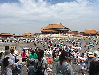 Einige Wochen später ging es dann endlich los. Wir sprachen uns mit anderen Teilnehmern der Sommeruniversität ab und flogen eine Woche vor Beginn der Uni nach Peking. Dort besuchten wir die Große Mauer, den Frühlingspalast, die Verbotene Stadt sowie einige andere Teile der Stadt. Nach vielen ersten Eindrücken über die chinesische Kultur und die Lebensweise in Peking machten wir uns mit dem Zug auf, in die Stadt Qingdao, eine Hafenstadt und ehemalige deutsche Kolonie.