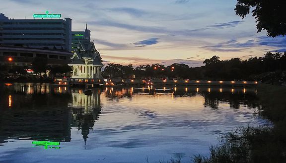 Ich besuchte die Khao San Road und einige Tempel und Paläste, und als ich drei Tage später im Bus nach Phitsanulok saß, war ich voller Vorfreude. Dort angekommen wusste ich nicht genau, an welcher Haltestelle ich aussteigen musste. Weder der Busfahrer noch die Ticket-Frau konnten Englisch. Glücklicherweise saß vor mir ein Mönch, der mir anbot, mich direkt zur „Naresuan University“ zu bringen. Der Mann schien vertrauenswürdig - schließlich war er ein Mönch. Und so ließ ich mich mit seinem klapprigen, rostigen, alten Jeep von der Bushaltestelle zur Universität fahren, wo mich zwei meiner zukünftigen Kollegen abholten und zu meiner Unterkunft brachten.